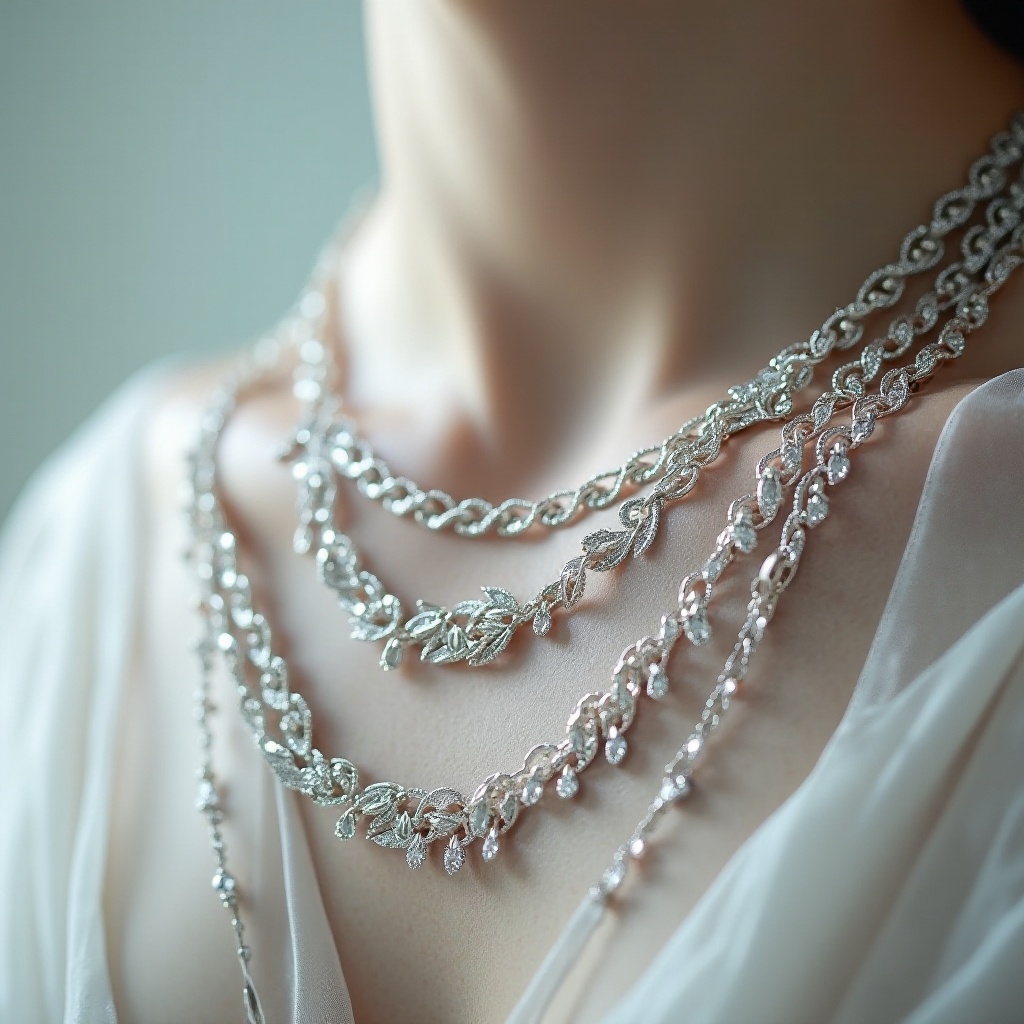 - Für Abendveranstaltungen: Eine längere, funkelnde Silberkette kann das Highlight Ihres Kleidungsstils sein.